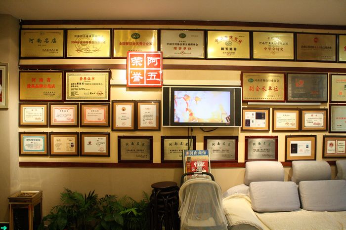 滿滿一面墻的獎狀讓每一個(gè)來這里的人都能深刻的了解到阿五美食的嚴(yán)謹(jǐn)風(fēng)格,
