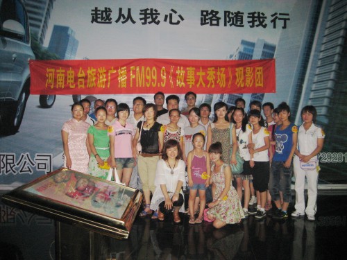 由河南電臺旅游廣播《故事大秀場》組織的《無人駕駛》觀影團合影