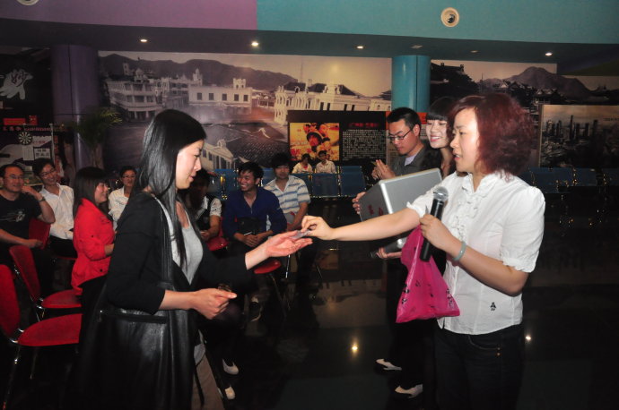 2010年5月8日上午10點(diǎn),河南電臺(tái)旅游廣播FM99.9《故事大秀場(chǎng)》聽(tīng)友觀影團(tuán),在鄭州百盛6樓的鄭州橫店影視電影城如期舉行。美女主持小佩、菲楊聯(lián)袂登場(chǎng),與聽(tīng)眾朋友精彩互動(dòng),現(xiàn)場(chǎng)有獎(jiǎng)問(wèn)答,鄭州橫店影視電影城也送出了各種精美禮品!互動(dòng)期間來(lái)自安陽(yáng)的聽(tīng)眾非常的幸運(yùn),獲得了本次活動(dòng)的大獎(jiǎng),一等獎(jiǎng):精美的純銀情侶對(duì)戒;還有2張價(jià)值45元的橫店影城貴賓券!大家?guī)е约旱亩Y物和歡聲笑語(yǔ),與小佩、菲楊一起在位于鄭州百盛廣場(chǎng)六樓的橫店影城電影城觀看了催淚大片《歲月神偷》,這部影片感動(dòng)了在場(chǎng)的每一位觀眾。活動(dòng)最后,每位到場(chǎng)的幸運(yùn)聽(tīng)眾還獲得了鄭州橫店影視電影城贈(zèng)送的寶龍新店“20元現(xiàn)金券”!參與活動(dòng)的所有聽(tīng)眾都收獲豐厚,真的是滿載而歸呀!在此特別感謝鄭州橫店影視城對(duì)本次活動(dòng)的大力支持!故事大秀場(chǎng)我秀我飛揚(yáng)~~~