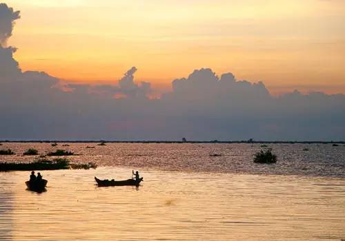 乘船游覽東南亞最大的淡水湖——洞里薩湖。它像一塊巨大碧綠的翡翠,鑲嵌在柬埔寨大地之上,也是柬埔寨人民的“生命之湖”。
