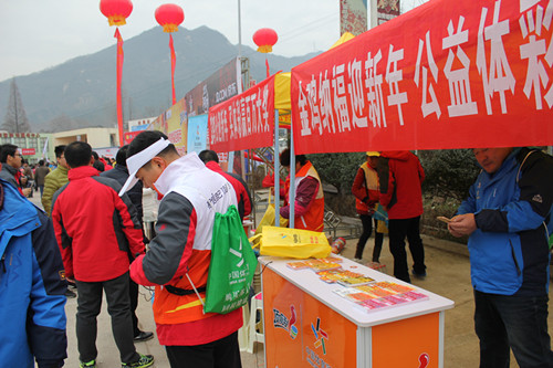 全民健身活動(dòng)連年開(kāi)展,并且已經(jīng)形成全國(guó)聯(lián)動(dòng),區(qū)域互動(dòng),百姓自動(dòng)的蓬勃景象,這離不開(kāi)體彩彩民朋友點(diǎn)滴的愛(ài)心匯聚和體彩人不分晝夜的堅(jiān)持拼搏,為了展示體育彩票的公益性和玩法樂(lè)趣,信陽(yáng)分中心還在開(kāi)幕式現(xiàn)場(chǎng)搭建了四張大型展板,“公益體彩 快樂(lè)操場(chǎng)”“送體育進(jìn)鄉(xiāng)村”“體彩?新長(zhǎng)城助貧困大學(xué)生項(xiàng)目”“貧困受災(zāi)地區(qū)愛(ài)心捐贈(zèng)”等等,散發(fā)出一縷縷公益光芒,溫暖著寒冬里登山人的心。 “河南體彩攜手京東購(gòu)物送300萬(wàn)大樂(lè)透代金券”“購(gòu)買頂呱刮彩票 搶百萬(wàn)紅包 贏華為手機(jī)活動(dòng)”,特別吸引了年輕登山人群的圍觀和關(guān)注。信陽(yáng)分中心開(kāi)展戶外即開(kāi)型銷售主推“金雞納?!毙履晏灼?,雞年登雞公山購(gòu)買“金雞納?!表斶晒尾势庇兄厥獾囊饬x,購(gòu)買滿30元還有登山“能量包”相送,為健身登高增添動(dòng)力。