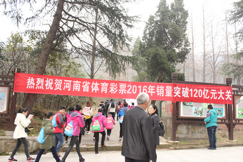 2017年1月1日元旦佳節(jié),“中國(guó)體育彩票”全國(guó)新年登高健身大會(huì)(華中主會(huì)場(chǎng))暨信陽(yáng)新年登雞公山健身大會(huì)“精彩開(kāi)幕,來(lái)自社會(huì)各界的3000余名群眾、體彩代表及健身愛(ài)好者參加活動(dòng)。新年登高意義深遠(yuǎn),在參與全民健身鍛煉體魄的同時(shí),還能帶來(lái)美好的希望。在協(xié)辦單位河南省體育彩票管理中心的指示下,體彩信陽(yáng)分中心組織了80名網(wǎng)點(diǎn)業(yè)主組成代表隊(duì)參賽,并在開(kāi)幕式現(xiàn)場(chǎng)舉行了多種形式的宣傳活動(dòng)。