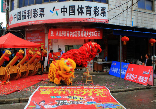 當(dāng)天下午,雖然下過小雨,但銷售網(wǎng)點(diǎn)門前仍然是人滿為患,好不熱鬧。聽說銷售點(diǎn)中了大獎(jiǎng),很多附近的彩民都來圍觀“中獎(jiǎng)福地”,業(yè)主張女士還專門請來了兩組舞獅隊(duì)進(jìn)行即興表演,一時(shí)間現(xiàn)場氣氛達(dá)到頂點(diǎn),據(jù)張女士說,自從她的銷售站出了大獎(jiǎng),慕名而來“沾喜氣”的彩民很多,大家都是試試手氣隨手刮上一兩張頂呱刮彩票。