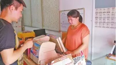 江海燕正在給彩民打彩票