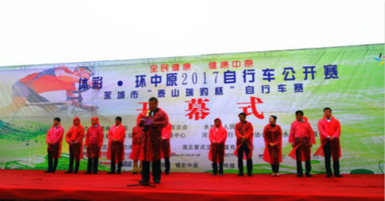 9月27日,以“全民健康,綠色中原”為宗旨的“體彩·環(huán)中原2017自行車公開賽--永城市泰山瑞豹杯自行車賽”在河南省永城市日月湖畔舉行。河南省自行車運動管理中心書記李健、永城市人大常委會副主任駱本京、永城市人民政府副市長吳英杰、永城市教育體育局副局長趙海濤等相關部門負責人以及來自國內外600多名運動員和多家媒體參加了啟動儀式,啟動儀式由永城市政府辦公室副主任杜平主持。