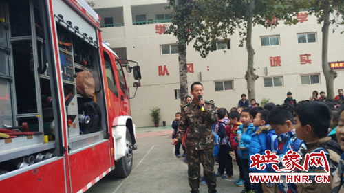 活動(dòng)在操場進(jìn)行,天氣雖然陰冷,但是孩子們都熱情很高。集合完畢后,郝洪飛教官以火災(zāi)事故,消防知識(shí),家庭防火及疏散逃生等生動(dòng)的案例為主要形式和內(nèi)容,從防火,逃生,報(bào)警自救,滅火幾方面進(jìn)行講解,多次強(qiáng)調(diào)防火的重要性及掌握自救本領(lǐng)的必要性。