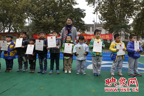 李春霞園長(zhǎng)和獲獎(jiǎng)小隊(duì)員們合影留念