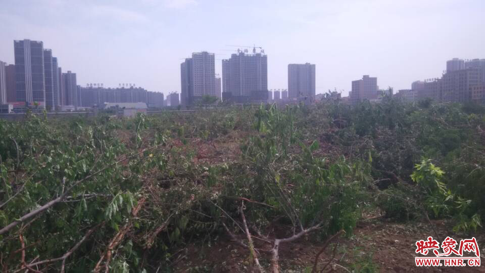 在場(chǎng)群眾坦言,此地塊靠近伊川縣城,緊挨洛欒旅游快速通道,在地理位置上非常優(yōu)越,周圍早已被開發(fā)的樓盤包圍了起來(lái),此次桃樹被砍一事應(yīng)該和村委會(huì)想征用此地塊搞開發(fā)有關(guān)。