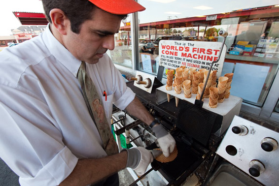 諾??耸械亩宫敱ち璧?Doumar's)因艾比?豆瑪在1904年的圣路易斯世界展覽會(huì)上發(fā)明了美國(guó)第一支蛋卷冰激凌而聞名于世。嘗一下百年蛋卷機(jī)做出來的冰激凌,還是那古老而甜蜜的味道。