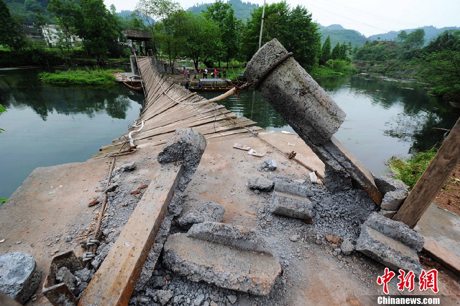 圖為吊橋的橋墩已經(jīng)嚴(yán)重?cái)嗔选?