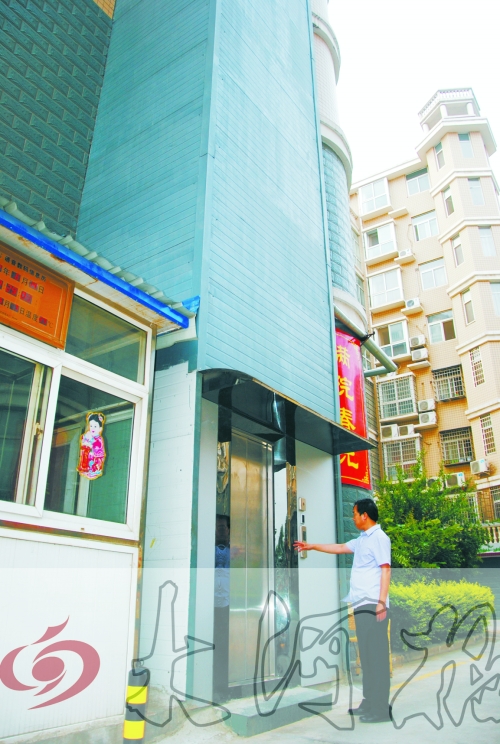 昨日傍晚6時許,記者在新密市一小區(qū)3號樓前見到了這部依樓而建直達(dá)頂樓7樓的電梯。小區(qū)物業(yè)部的韓經(jīng)理說,這部電梯是去年10月份建成的,僅供7樓住戶李先生家使用。李先生在煤礦工作,家中的經(jīng)濟(jì)條件不錯。