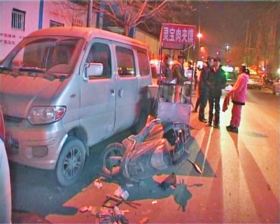 被撞的小吃攤一個是賣肉夾饃的,一個是賣鴨脖的。據(jù)賣肉夾饃的攤主說,肇事車司機是一個二三十歲的男子,當(dāng)時他曾停下來說“到前邊會停下來”,沒想到竟加速跑了。