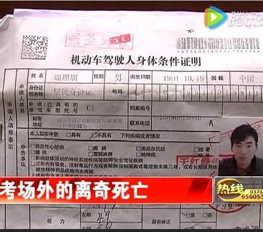 商丘25歲小伙考證體檢正常 科目三考前離奇死亡