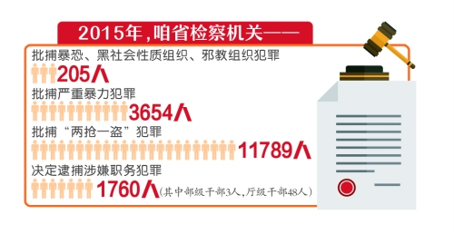 去年,我省檢察機關(guān)決定逮捕涉嫌職務(wù)犯罪1760人,其中部級干部3人,廳級干部48人。此外,在打擊非法集資、促進依法行政、規(guī)范司法方面也取得成效。