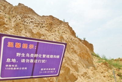 為保護(hù)鳥(niǎo)兒安全度過(guò)繁育期,河南省森林公安局、河南省野生鳥(niǎo)類(lèi)觀察學(xué)會(huì)在土堆前立了一塊警示牌,上書(shū)“鳥(niǎo)類(lèi)棲息地,禁止靠近”,呼吁社會(huì)善待候鳥(niǎo)。而新鄭市林業(yè)局林政科有關(guān)人員在接受記者采訪(fǎng)時(shí)亦稱(chēng):“我們只要一接到群眾舉報(bào),立即會(huì)同公安機(jī)關(guān),盡快把這些燕子集中育雛地保護(hù)起來(lái),除告知施工單位停工外,還在一定區(qū)域內(nèi)拉起警戒線(xiàn),禁止無(wú)關(guān)人員驚擾燕子孵卵育雛,今年新鄭市總共有三處燕子育雛地被集中保護(hù),新鄭市保護(hù)崖沙燕的善舉曾得到過(guò)中央級(jí)媒體的表?yè)P(yáng),接下來(lái)我們會(huì)再接再厲,爭(zhēng)取做得更好。”