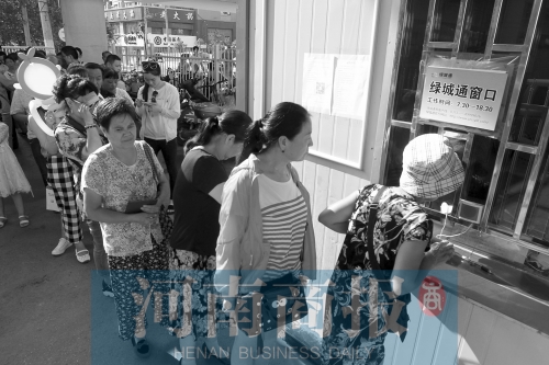 當天下午4點多,位于鄭州市醫(yī)學院立交橋北引橋下的公交卡充值點前人頭攢動,等候辦理業(yè)務的隊伍從窗口一直排到了馬路上?!皯摱嚅_幾個窗口?!蓖跸壬谂帕?0多分鐘隊后抱怨道。