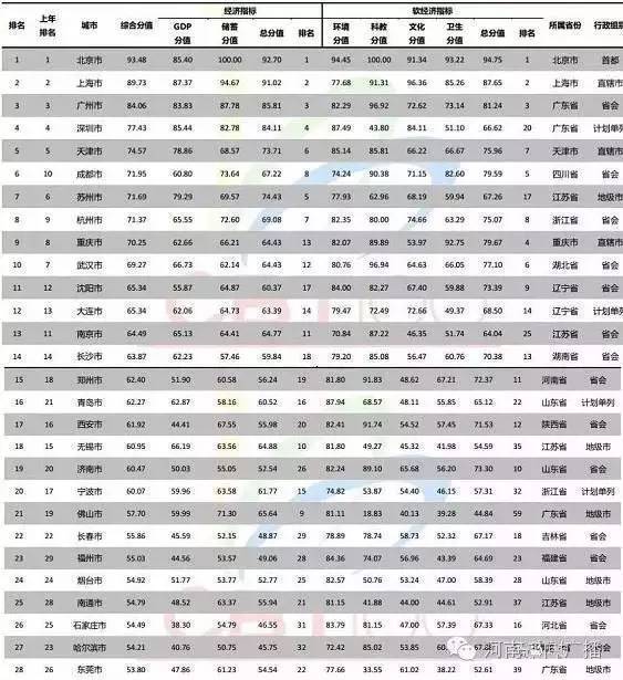 對(duì)于2016年中國(guó)百?gòu)?qiáng)城市排行榜,河南省商業(yè)經(jīng)濟(jì)學(xué)會(huì)的副秘書長(zhǎng)任佳表示,這正是河南城市實(shí)力的證明。據(jù)了解,中國(guó)百?gòu)?qiáng)城市排行榜除了有經(jīng)濟(jì)指標(biāo)以外,還有非經(jīng)濟(jì)的指標(biāo)綜合而成。這一指標(biāo)體系可更加全面、科學(xué)地衡量一個(gè)地區(qū)政治、經(jīng)濟(jì)、社會(huì)、文化、生態(tài)等“五個(gè)文明”的建設(shè)發(fā)展水平。