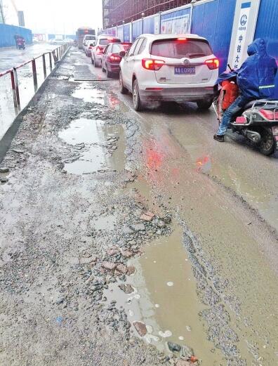 中鐵大橋局該項目部負責人楊先生稱,他們每天派出4人對保通路維護,一旦發(fā)現(xiàn)破損,將用泥沙、石子等暫時填充,有些大坑暫時放上鋼板,以保證道路暢通?!暗@條路車流量太大,沒幾天,大坑就又出現(xiàn)了。”