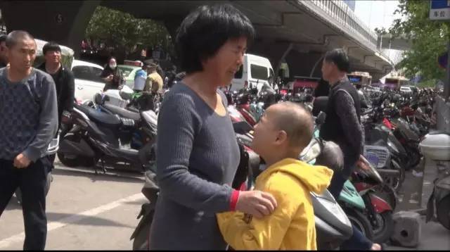 4月23日,在鄭州市建設路鄭大一附院立交橋下,一名七歲多的男孩和一位老人一起抱頭痛哭。