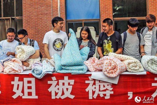2015年05月31日,北京,清華大學(xué)生物科技學(xué)院大三學(xué)生小磊(左一)花800元買下了兩套學(xué)姐的被子。清華大學(xué)生物科技學(xué)院的大三學(xué)生小磊說(shuō),他在閑魚app上花了近800元拍下了兩床學(xué)姐的舊被子,就旁人看來(lái)這簡(jiǎn)直就是“天價(jià)”,可小磊卻稱 “不貴!學(xué)姐馬上要回韓國(guó)了,我仰慕她三年,留樣?xùn)|西給自己作個(gè)念想也好”,小磊說(shuō)。
