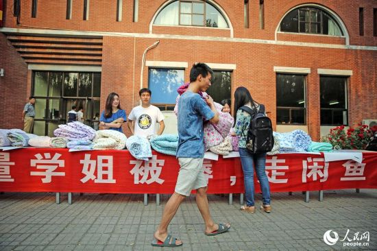 2015年05月31日,北京,清華大學(xué),今年即將畢業(yè)回國(guó)的韓國(guó)女生李惠林正在參與買被子。高價(jià)被子的主人是清華大學(xué)工藝美術(shù)系的一名留學(xué)生李惠林,現(xiàn)年大四的她畢業(yè)后將要回韓國(guó),于是將大部分不便攜帶的生活物品都賣給了龍一, 除了被子,還有書和化妝品。