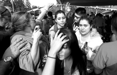 10月24日,在美國華盛頓州西雅圖市,學(xué)生和家長在槍擊案發(fā)生后團聚。新華社發(fā)