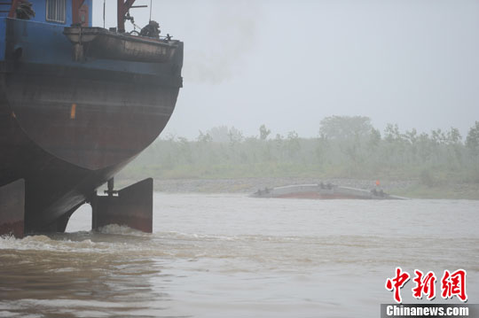 5月17日凌晨,長江無為境內的白茆水道發(fā)生一起三艘外地船舶碰撞事故,造成7人失蹤。中新社發(fā) 張婭子 攝