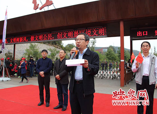 “在剛剛過去的十一黃金周,我們安陽旅游市場可以說是好事連連,紅旗渠榮登全國‘十一’旅游假期紅榜,被國家旅游局評為旅游市場秩序最佳景區(qū)。為便于大家參觀,今天有多個景點同時接待游客,并特意在紅旗渠景區(qū)為老人舉辦了歡迎儀式,相信安陽豐富多彩的旅游資源能給老年人留下美好而深刻的印象,在將來的日子里,吸引更多的游客走進紅旗渠畔,走進殷商古都?!笔新糜尉止ぷ魅藛T說。