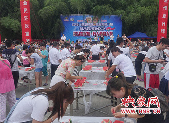 “挑戰(zhàn)吉尼斯 萬人吃西瓜”是由欒川重渡溝風景區(qū)和鄭州支點旅游品牌策劃有限公司聯(lián)合打造的2016“燕京啤酒”重渡溝第八屆音樂啤酒狂歡節(jié)狂歡不停歇第三期主題活動。當日重渡溝景區(qū)熱鬧非凡,擺滿誘人西瓜的小方桌次第擺開,翠綠的皮、鮮紅的瓤、瓜香四溢。游客們熱情參與,現(xiàn)場妙趣橫生。有“推土機”式掃蕩吃法,有“生猛”地大口吞咽,有小朋友萌態(tài)啃瓜表情十足......真是吃得爽快,玩得暢快,贏得痛快。比賽分為“狼吞虎咽”男子組、“大快朵頤”女子組,每組冠軍將獲得3000元現(xiàn)金大獎。經過淘汰賽、決賽層層激烈角逐,最終比賽決出男女子組一、二、三等獎各一名,所有參賽選手都乘興而來,滿載而歸!“來重渡溝吃西瓜感覺特別甜,特別痛快!從來沒有跟這么多人一起吃西瓜,一口氣連吃三塊還不過癮!”一位游客笑著對記者說。