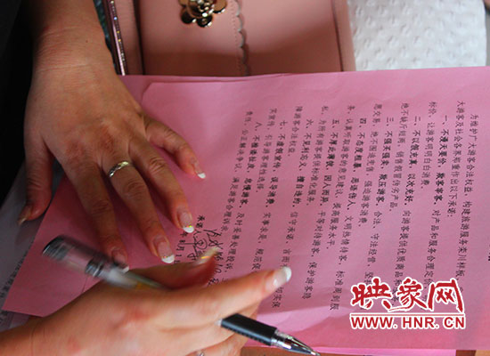 宣誓完后,參加宣誓的各鄉(xiāng)鎮(zhèn)、各有關(guān)委局、旅游景區(qū)、星級酒店、景區(qū)商戶、旅行社以及農(nóng)家賓館業(yè)主紛紛簽訂了《欒川旅游服務(wù)“八不”承諾書》。承諾內(nèi)容包括:不漫天要價(jià),欺客宰客;不以假充真,以次充好;不強(qiáng)買強(qiáng)賣,欺壓游客;不態(tài)度粗暴,惡語傷人;不厚此薄彼,因人而異;不見利忘義,擅自違約;不虛假宣傳,誤導(dǎo)消費(fèi);不推諉扯皮,怠慢游客。