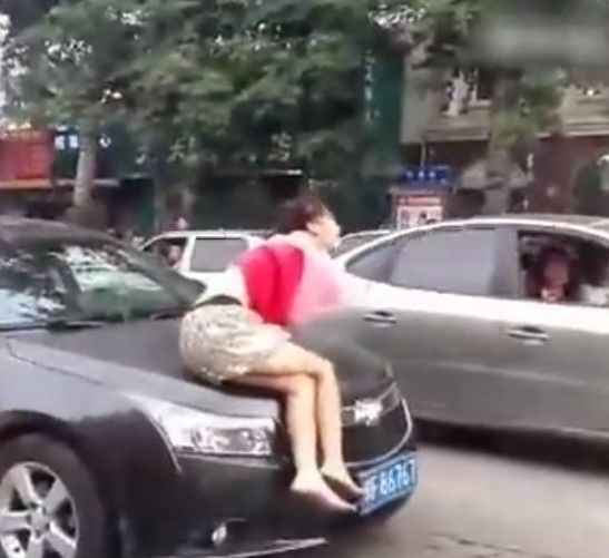 據(jù)說這名女子經(jīng)常出沒在這帶上演人車大戰(zhàn)。路上的小轎車司機看見她就十分的頭痛。因為她專找小轎車下手。其實也不傻!今天又出現(xiàn)在村里的小吃街上了,鎖定黑色雪佛蘭。二話不說就上了它!其實就她的一些小計倆,路邊的人都心知肚明了,誰叫她精神有點不好呢!