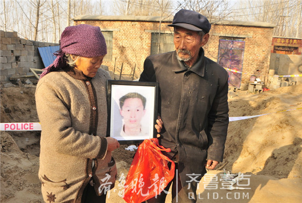 2011年,聊城市東阿縣劉集鎮(zhèn)東三合村楊福芝的兒子楊貞祥失蹤了。老兩口苦苦尋找,尋子成了老兩口的心病。五年后,楊貞祥失蹤案破案,楊貞祥系被本村村民董某某和楊福芝的兒媳劉某某殺害。12月5日,犯罪嫌疑人指認埋尸地點,在離楊福芝家50米的地方,兒子的遺骸從2米深的坑里被挖出,老人痛哭失聲,悲痛不已。