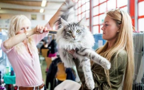 據(jù)外媒報道,日前,瑞士沃勒勞(Wollerau)舉行國際貓展。展覽上,各路“喵星人”紛紛亮相比美。圖為一只名為“布拉德利”(Bradley)的貓咪梳妝打扮,準備參賽。