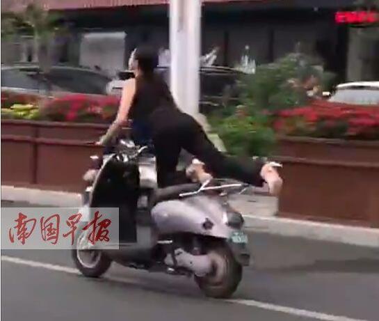 4月24日,有網(wǎng)友在微博上發(fā)布一段視頻:一女車手騎電驢的方式有些奇葩,車輛行駛過程中,女子突然往后伸出大長腿,擺出“飛行”姿勢(shì)一路前行?!薄 ∵€有網(wǎng)友調(diào)侃說,“沒想到你是這樣深藏不露的大長腿”,認(rèn)為該女子的駕車行為頗為奇葩。