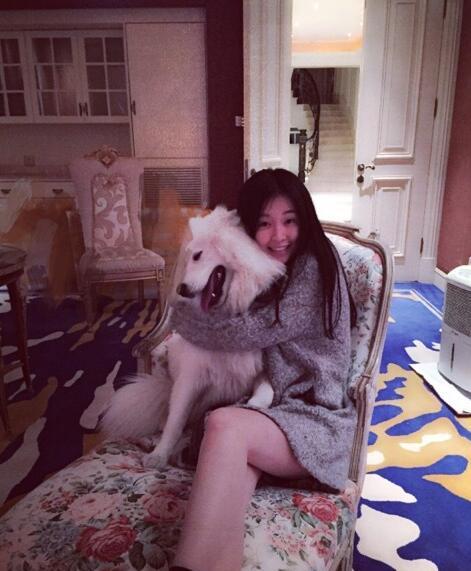 喬欣抱著薩摩耶,屋子里還帶旋轉(zhuǎn)樓梯