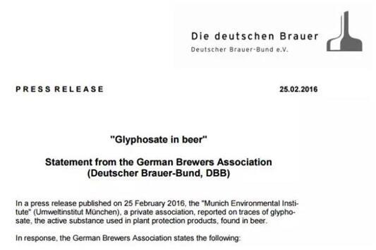 據(jù)鐘凱介紹,德國(guó)釀造業(yè)協(xié)會(huì)(DBB)曾對(duì)這則報(bào)道發(fā)布聲明進(jìn)行辟謠,并附有德國(guó)聯(lián)邦評(píng)估所(BfR)的官方態(tài)度。聲明指出,首先,使用農(nóng)藥就會(huì)有殘留,但殘留量不會(huì)其威脅健康。慕尼黑環(huán)境研究院發(fā)布的報(bào)告未提供充足證據(jù)以及分析方法,所以散布的檢測(cè)結(jié)果是經(jīng)不起驗(yàn)證的、不可信的。并且,德國(guó)釀造業(yè)協(xié)會(huì)有其自己的監(jiān)測(cè)體系,所得數(shù)據(jù)顯示,麥芽的草甘膦水平通常比限量低100倍。德國(guó)聯(lián)邦評(píng)估所也明確提出,按照?qǐng)?bào)道中最高的草酸磷殘留量30毫克每升來看,成年人每天要喝1000升啤酒才可能影響健康。