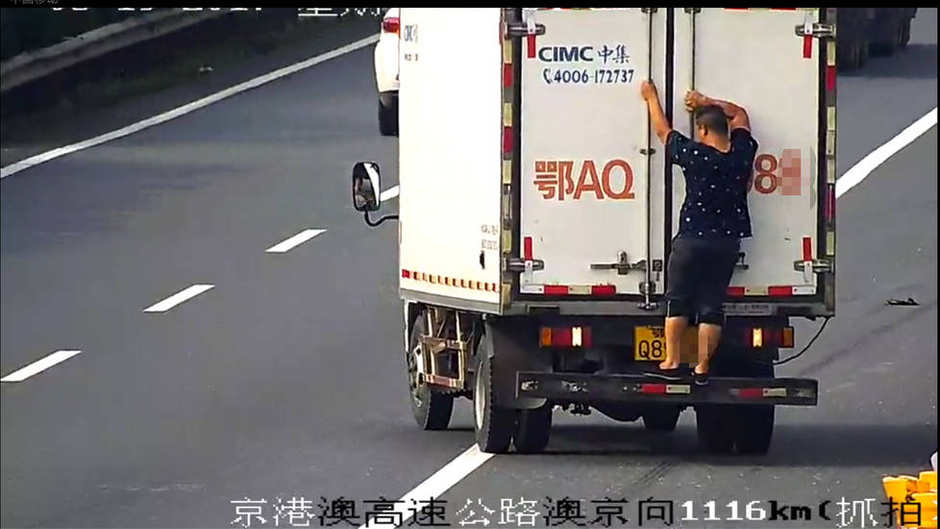 他在高速路上這樣擋車牌