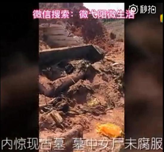 7月28日,在上饒市弋陽縣新看守所建筑工地,挖出一個古墓,現(xiàn)場掘出一口棺材,并發(fā)現(xiàn)一具保存尚為完好、身著疑似名門貴族服飾的女干尸。而在半年多前,2016年11月7日,同樣在江西上饒,上饒縣石獅鄉(xiāng)王家壩白領小組一處施工工地發(fā)現(xiàn)一處古墓。