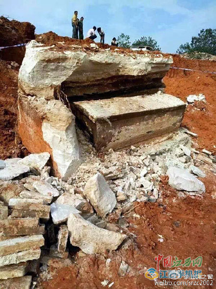 而在半年多前,2016年11月7日,同樣在江西上饒,上饒縣石獅鄉(xiāng)王家壩白領小組一處施工工地發(fā)現(xiàn)一處古墓。