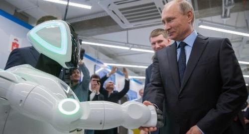 俄機(jī)器人從試驗(yàn)場(chǎng)“逃跑” 與普京握手