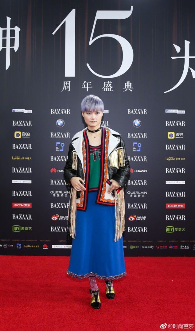 紫色長襪、寶藍長裙、墨綠上衣、黑皮流蘇外套、奶奶灰短發(fā),混搭玩到這個程度的還有誰?真心敗給李宇春。