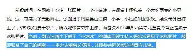 根據(jù)2016年7月一篇來自新浪湖南的文章——《貴之步發(fā)起愛心夏令營情暖湘西留守兒童》描述,湖南衛(wèi)視主持人楊樂樂的閨蜜,便是此次被告上法院的貴之步董事長鄭靖。