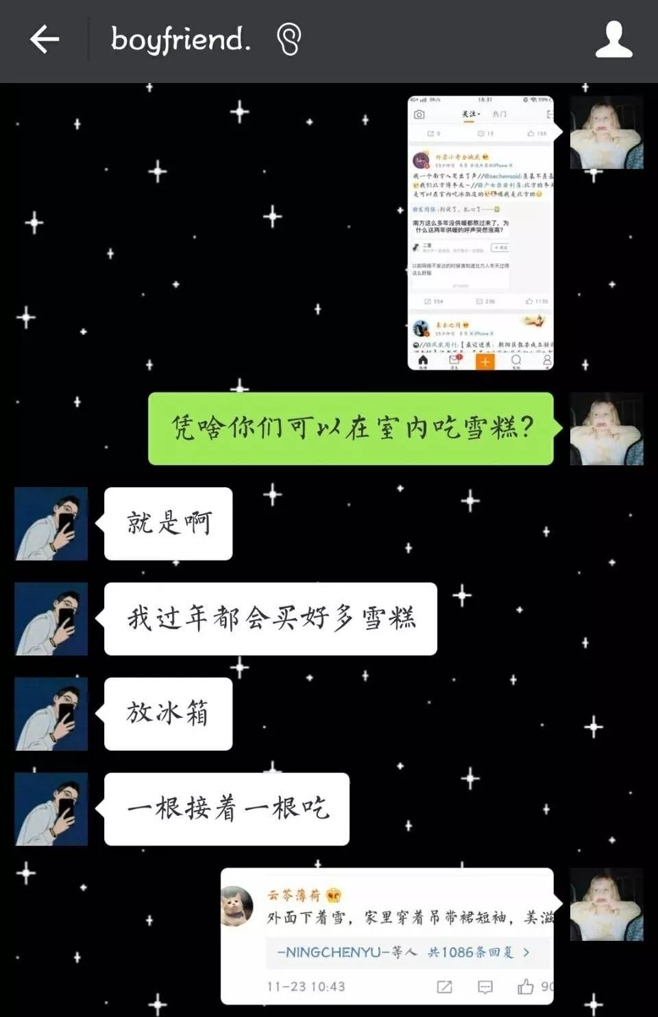 那一定是大冬天吃雪糕?。?/p>
