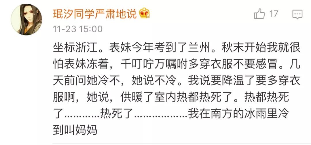 在南方的表姐表示:多穿點