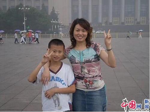 2007年,11歲的李嘉浩和媽媽去北京旅游,在天安門廣場上合影,那是他第一次跟媽媽出遠門。(受訪者供圖)