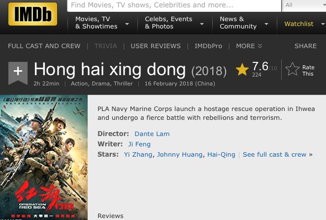 有意思的是,看到《紅海行動(dòng)》如此刷屏,一位印度網(wǎng)友顯然很是“眼紅”。他不無羨慕嫉妒地問道:“為什么我們印度就不能拍這樣的電影呢?”