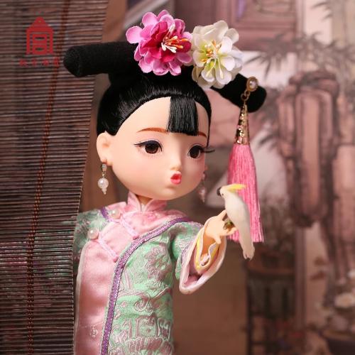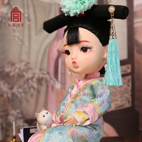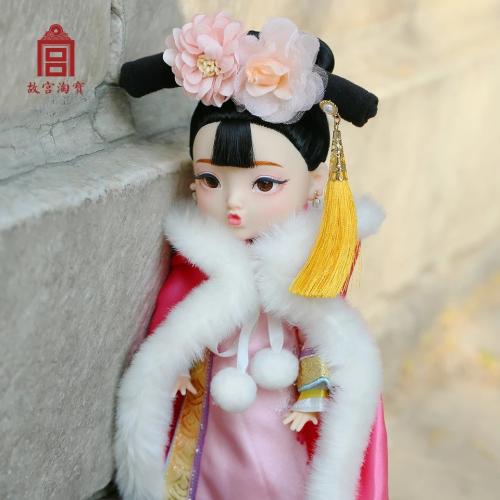 因此,故宮文創(chuàng)根據(jù)中國人的傳統(tǒng)五官印象,設(shè)計(jì)成此款烏發(fā)杏眼,寬額小嘴的中國娃娃。故宮文創(chuàng)方面表示,首次娃娃選擇了清代服飾,并在工藝允許的基礎(chǔ)上努力還原真實(shí)的清朝格格形象,之后還會陸續(xù)推出不同朝代的格格或公主服飾單品。