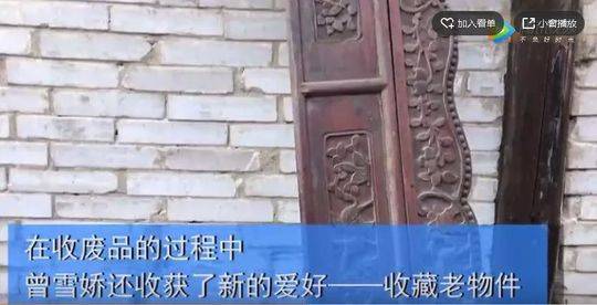 在收廢品的過程中,曾雪嬌也會同時收藏一些老物件。從剛?cè)胄械浆F(xiàn)在,就收到明清的銅錢,還有復(fù)古的煙斗,一顆釘子都沒有的雕花木門等各式各樣的小物件,“就像尋寶一樣,你會在這個過程中發(fā)現(xiàn)驚喜,并且樂此不?!?/p>
