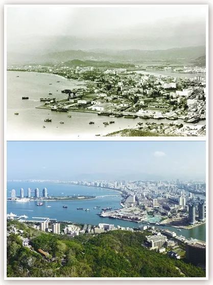 拼版照片為在三亞市鹿回頭景區(qū)鳥瞰三亞市景今昔對比(上圖為1991年2月新華社記者姜恩宇攝,下圖為2018年4月4日新華社記者郭程攝)。 新華社發(fā)