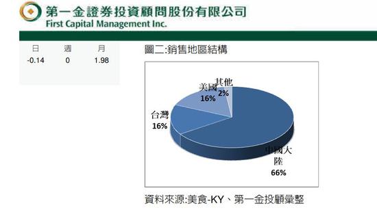 數(shù)據(jù)顯示這家來自臺(tái)灣省的餐飲企業(yè)對(duì)大陸市場(chǎng)很是依賴,其母公司“美食-KY”2017年第三季度的營(yíng)收中有66%是來自大陸地區(qū)的562家店鋪,而臺(tái)灣地區(qū)的營(yíng)收占比則僅為16%。